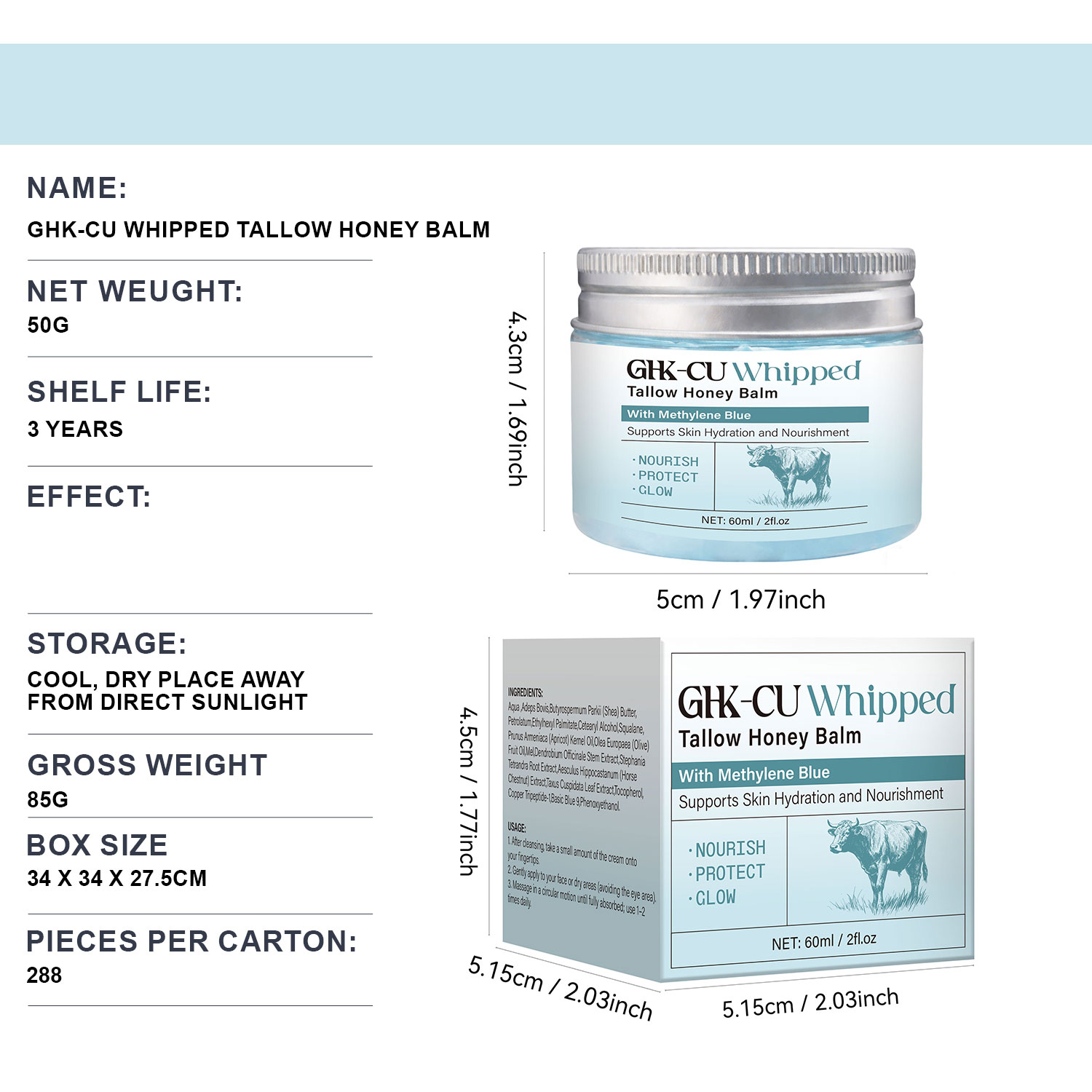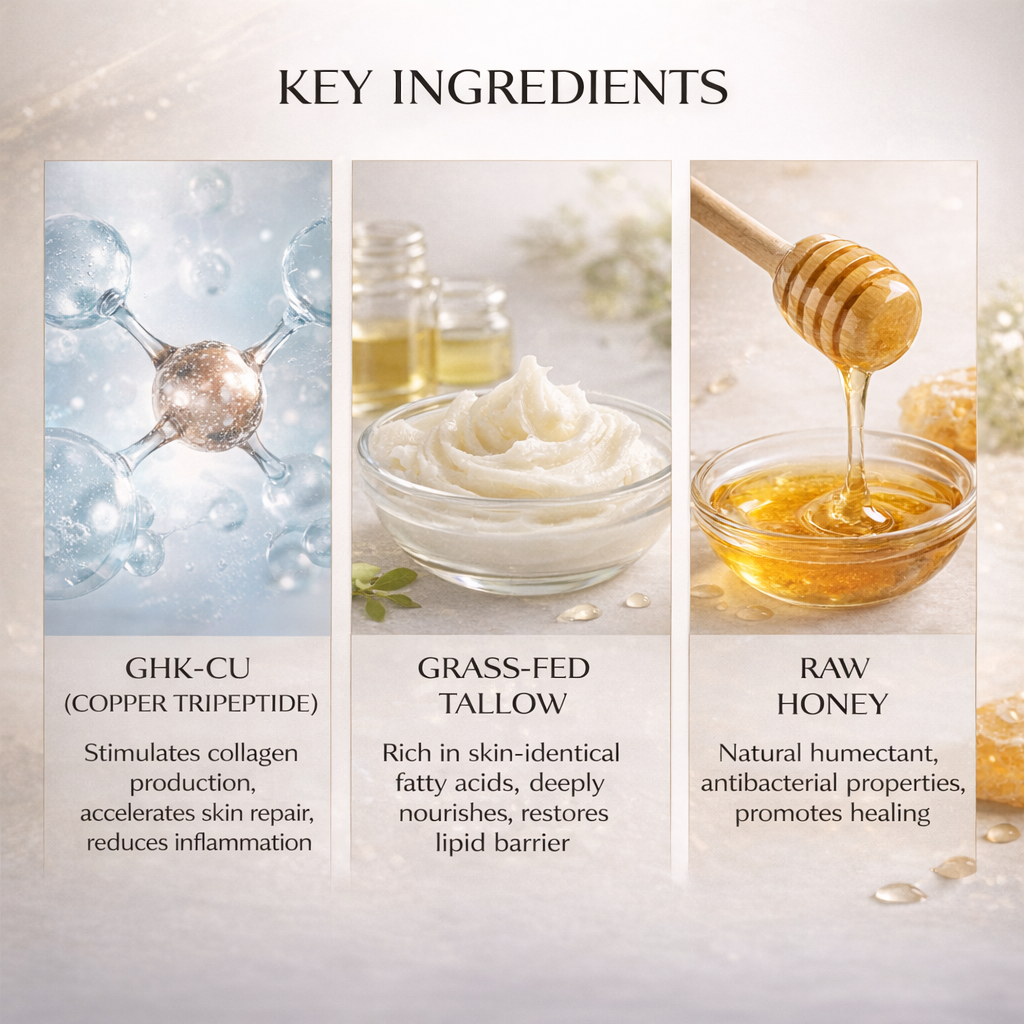 Ready to Ship GHK-Cu Whipped Tallow Honey Balm – Triple-Action Skin Repair Formula with Copper Peptide, Grass-Fed Tallow & Manuka Honey, Deeply Nourishing Multi-Purpose Balm for Face, Body, Lips, Sensitive & Damaged Skin