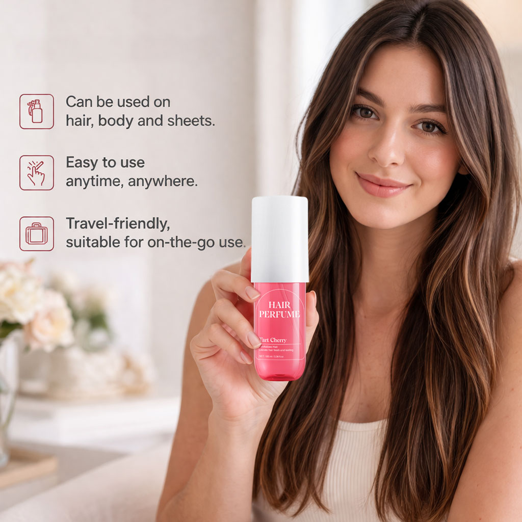 Your hair deserves its own signature fragrance. Hair Perfume is a lightweight mist that does more than just smell beautiful – it revitalizes hair with a nourishing blend of panthenol and silk amino acids, adding instant softness and shine while taming flyaways. The expertly crafted long‑lasting pleasant scent lingers delicately on your strands for hours without being overpowering – just a fresh, clean aura every time you move. Perfect for post‑gym refresh, between washes, or before a night out. The alcohol‑free formula won’t strip moisture or cause dryness. Simply spray from mid‑lengths to ends. No residue, no stickiness – only beautifully scented, healthy‑looking hair. Available in floral, fruity, or fresh variants. Finally, a fragrance that loves your hair as much as you do.